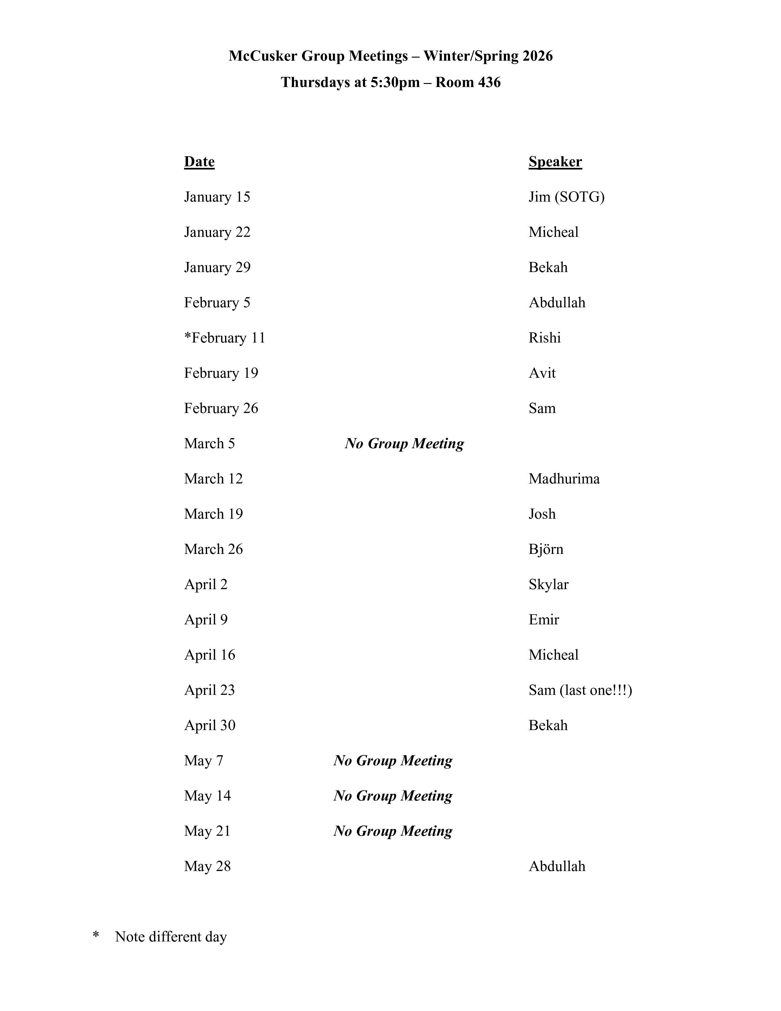 Group Meeting Schedule