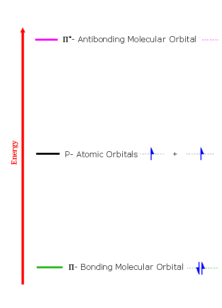 In the following models, the sp2 carbon atoms are dark gray and the hydrogens are cyan. The different phases of the molecular orbitals are colored red and blue and are separated by nodal surfaces at which electron density is zero. π-orbitals are formed by overlap of p-orbitals having like phases. The lowest energy π-orbital, has a single nodal plane, that of the atoms. The higher energy π-orbital has two nodes, the second perpendicular to the first. The molecules can be rotated by clicking on the structure and dragging the mouse. Holding the shift key during this operation allows zooming.
