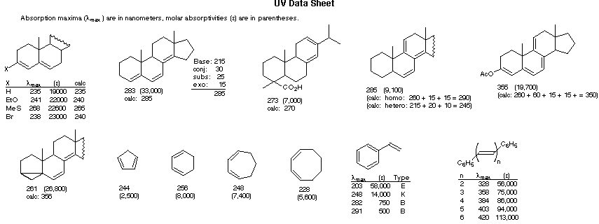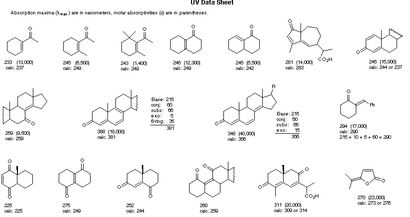 If the sample compound does not absorb light of of a given wavelength, I = I0. However, if the sample compound absorbs light then I is less than I0, and this difference may be plotted on a graph versus wavelength, as shown on the right. Absorption may be presented as transmittance (T = I/I0) or absorbance (A= log I0/I). If no absorption has occurred, T = 1.0 and A= 0. Most spectrometers display absorbance on the vertical axis, and the commonly observed range is from 0 (100% transmittance) to 2 (1% transmittance). The wavelength of maximum absorbance is a characteristic value, designated as λmax.
