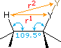 Since the eclipsed conformer of ethane has three eclipsed C–H bonds, it is tempting to attribute 1.0 kcal/mole of strain to each, resulting in a total of 3 kcal/mole torsion strain. Indeed, it has been noted that the rotational energy barriers in methyl amine and methanol are lower by 1 kcal/mole for each eclipsed C–H bond that is missing, as shown in group A of the following diagram. Although the non-bonding electron pair(s) in these compounds are shown in spatially directed sp3 orbitals, the exact location is a subject of debate and they do not appear to offer any significant steric hindrance. It might be argued that the C–X bond length is shortened and the C–X–H bond angle narrowed in the alcohol and amine, but molecular structure calculations indicate the eclipsed H---H distance remains the same.